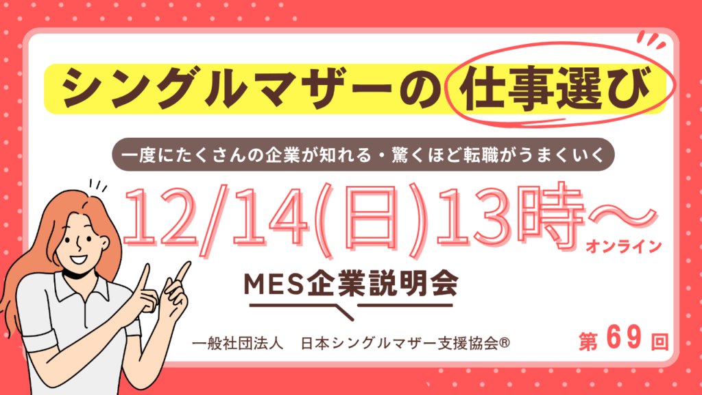 【12/14(日)シングルマザーを応援!教育付き仕事紹介で、あなたのキャリアを支えます!MES企業説明会】