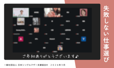 2026年3月21日(土)、オンラインにて「失敗しない仕事選びシリーズ」の第2回セミナーを開催いたしました。当日は20名近い皆様にご参加いただき、シングルマザーが後悔しないための「働き方の選び方」について、お伝えしました […]